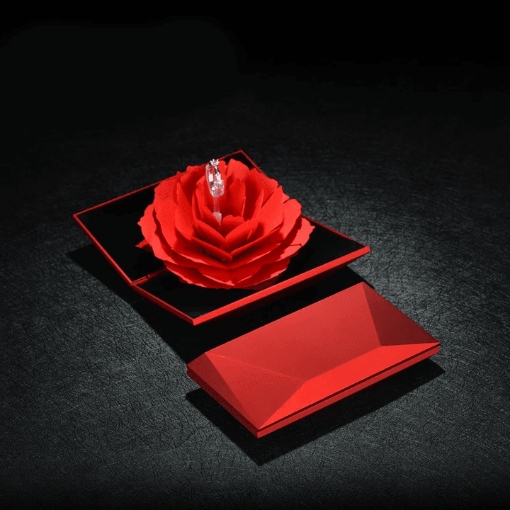 With special idea is The ring slowly rising in the rose is like a revolving ballet dancer on a crystal box. To make surprise and so perfect for who you love.