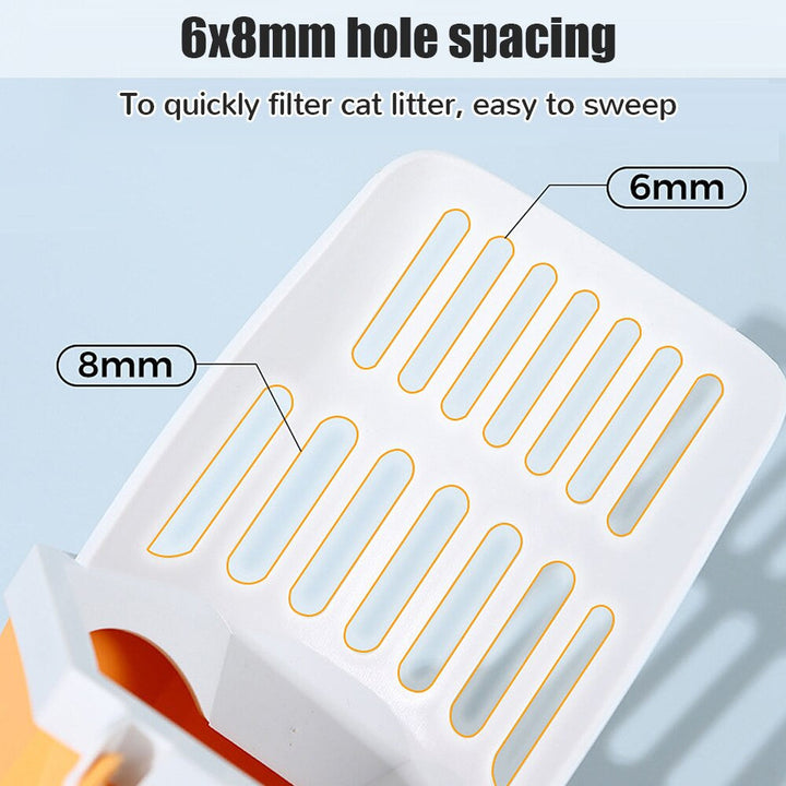 AMAZING QUALITY: Sturdy enough to scoop up even for big chunks. Perfect size holes (6MM/8MM), so the clean cat litter can go through. Perfect work with pellet style litter as well.
