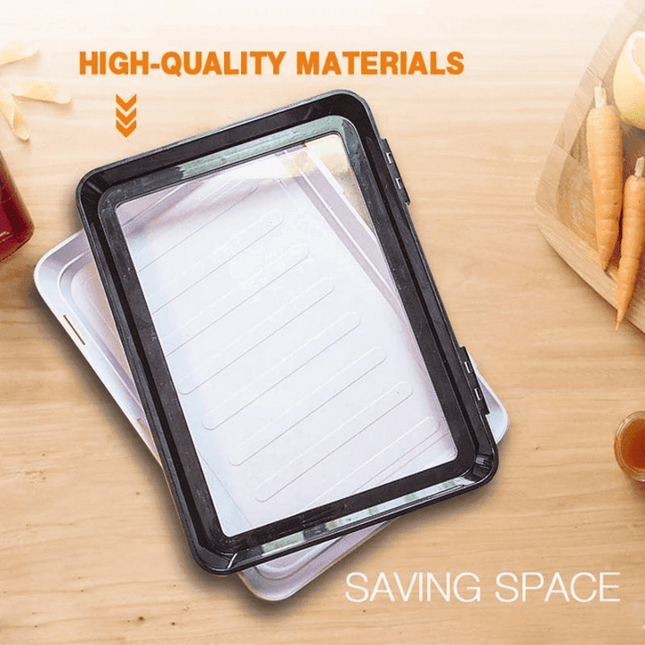 The food preservation tray is made of high-quality BPA free and food-grade plastic. It is safe under freezing condition.