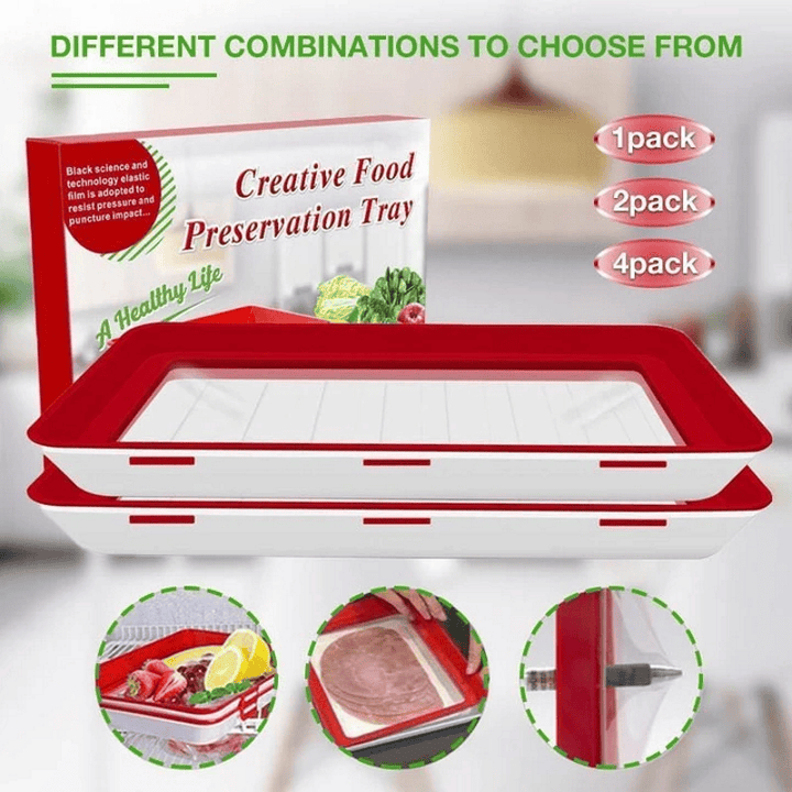 The food preservation tray has a leak proof lid and an elastic film which can avoid your food from exposing to air or dust and help the food stay fresh longer than ever.