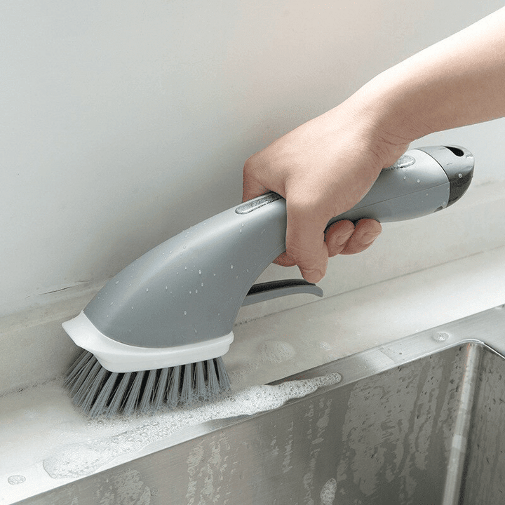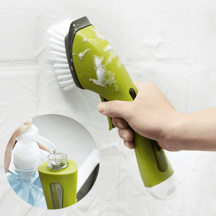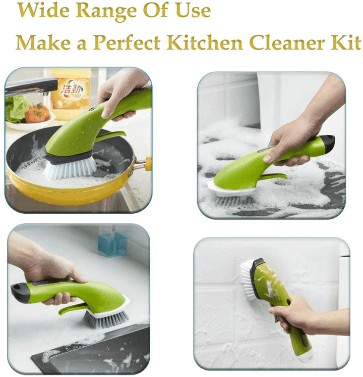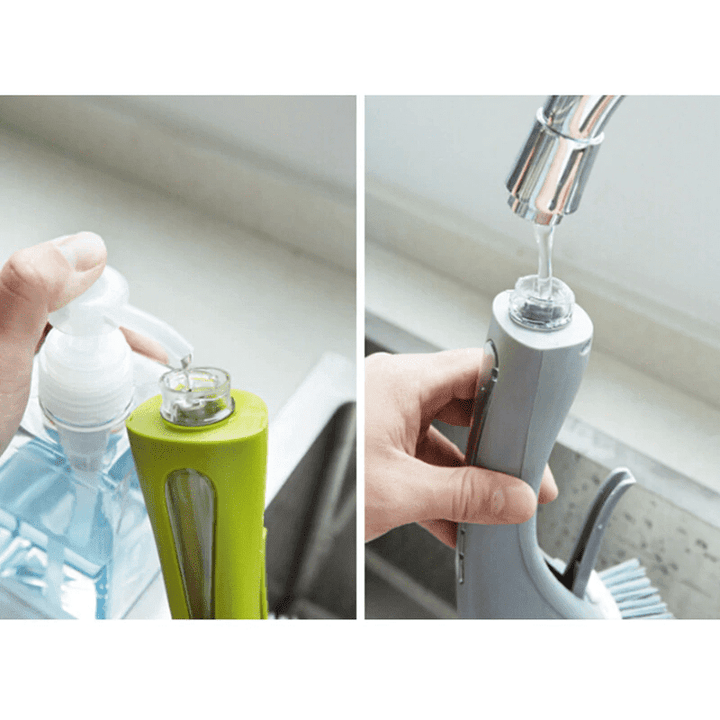✔️ The ergonomic non-slip handle fits comfortably in the hand even when wet and soapy. The handle doubles as a soap resovoir, which is easily fillable with any dish soap.