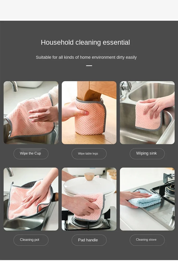 The dishtowel is made of high quality coral velvet thickening material, lightweight, super absorbent and dry quickly.